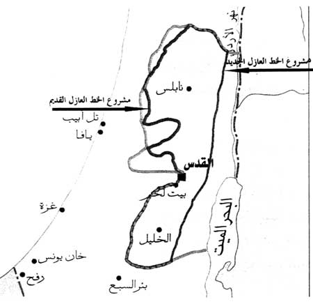 Le 29/1/2002 l’édification du mur de séparation avait commencé, tout au long des lignes de démarcation; la longueur de la première cloison, plus de 15000000 m2 de terres palestiniennes furent réquisitionnées. La 2ème phase qui va du Nord de Jérusalem à Allatroun a arrivé à la région Beit Jibril à Al Khalil au Sud, consiste à continuer à édifier le mur - du Nord de la Cisjordanie allant vers son côté Sud.
