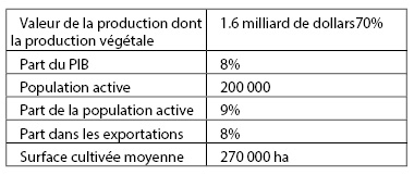 Le tableau, ci-dessous donne des chiffres approximatifs du secteur agricole libanais: