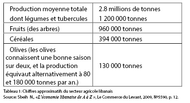 [31]- Voir Tableau 1: chiffres approximatifs du secteur agricole libanais.