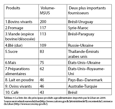 Voilà la liste des dix principaux produits agroalimentaires importés par le Liban en 2009: