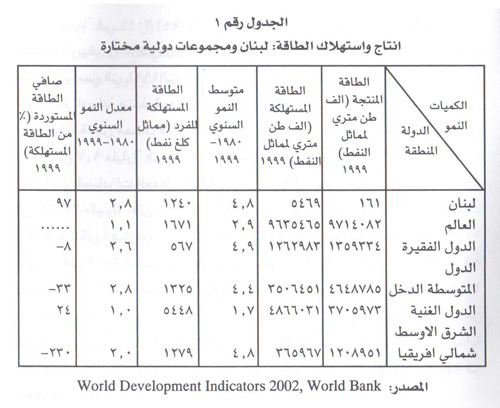 وانطلاقاً من ذلك، وبالعودة الى الحالة اللبنانية، ثمة ما يشجع على الاعتقاد ان استهلاك الطاقة يتجه الى زيادة ، وان هذه الزيادة يفترض ان تتعزز في حال الاكتشاف المؤكد لثروة ممكنة وفي حـال استغـلال هـذه الثروة . وفي هـذه الحال او الأصح في إحدى هاتين الحالتين يصبح توقع إنتعاش النمو امراً طبيعياً، وربما تحوّل هذا النمو الى حال من النمو العالي لاحقاً، خصوصاً، اذا أحسن لبنان استغلال الفرصة[52].