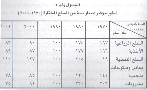شهدت اسعار النفط تقلبات حادة في العقود الثلاثة الأخيرة من القرن الماضي. واذا كانت الصدمة النفطية الاولى (1973) قد لعبت دوراً في تصحيح جذري اول للسعر ، فان هذه الصدمة أدّت ايضاً، ومن خلال ردود الفعل التي احدثتها، في التمهيد للصدمة الثالثة (1987) وبالتالي في عودة الاسعار الى الانخفاض، ثم الهدوء، لاحقاً. لكن حصيلة التطور كانت، منذ 1971، وحتى اليوم، ايجابية لمصلحة النفط اذ ارتفع السعر الرسمي للبرميل من 1.67 دولار وسطياً في 1971 الى 23.12 دولاراً في 2001 الا ان المضمون الحقيقي للسعر، محتسباً من قبل منظمة "أوبيك" بحسب معدلات التضخم وتطور اسعار سلة من السلع الرئيسية الاخرى، زاد فقط من 2.38 دولار الى 6.56 دولارات[37]. ويستدل على تقلص القيمة الحقيقية لسعر النفط من خلال متابعة مؤشر السعر محتسباً من قبل البنك الدولي جنباً الى جنب مع أسعار سلة من السلع المختارة تعرضت، هي الاخرى، وكما مواد أولية وزراعية تنتجها دول نامية، الى الإنخفاض.