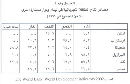 ويمكن ان يستدل الى كل ذلك ، أكلاف وشروط انتاج و"فاتورة" عالية و...هدر، من خلال قراءة المثل الأبرز في مؤسسة كهرباء لبنان. وقدرت "فاتورة" المحروقات للمؤسسة وحدها بنحو 400مليون دولار[47]، وبعيداً عن الخوض في هموم هذه المؤسسة (الكثيرة ) يلفت ان لبنان ما زال يركز على دورات انتاج تقليدية وغالية للطاقة ، ومنها الكهربائية ، بينما كان يمكن ان يلجأ ، منذ سنوات ، الى خيارات اخرى اقل كلفة وتلويثاً، وهو ما تفعله دول عدة في العالم .