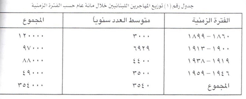 ومهما يكن من أمر, فإن عدد المهاجرين اللبنانيين الى بلدان الاغتراب وصل خلال مائة عام 1860 1959 إلى حوالى 354 ألف نسمة موزعين حسب الفترة الزمنية على الوجه التالي: