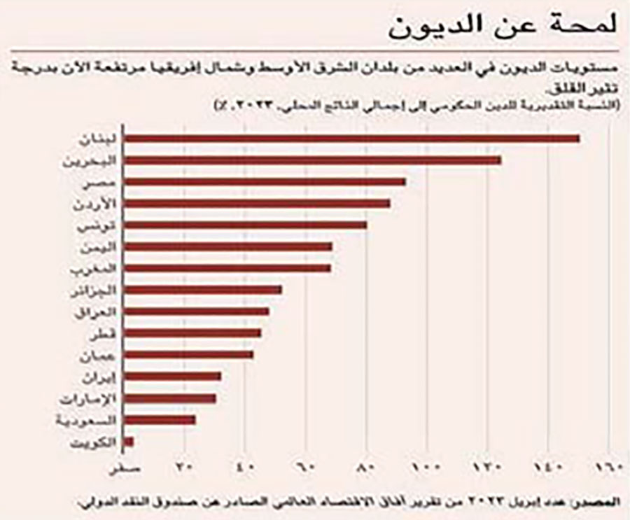 2. مزارعي، عدنان، غيوم الديون تخيم على منطقة الشرق الأوسط، مجلة التمويل والتنمية لصندوق النقد الدولي، أيلول 2023، الموقع الإلكتروني: غيوم الديون تخيم على منطقة الشرق الأوسط (imf.org).