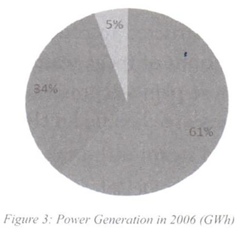 There are two types of power generation in Lebanon. The first one is generating through thermal plant, and the second one is generating through hydraulic plant. In addition to that, there is the outsourcing energy which is transmitted from Egypt (527 GWH[9]) and Syria (589 GWH), and such imported energy represents 7.5% of the national electric production.