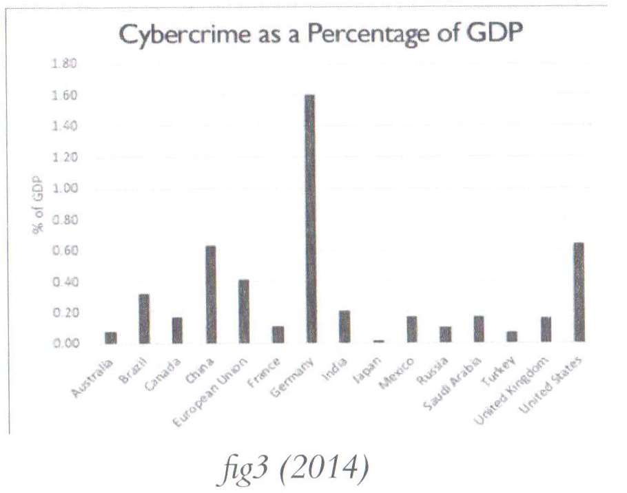 As a percentage of global GDP, cyber-crime costed the global economy 0.62% of GDP in 2014. Figure 3 below[23], shows some values of this field.