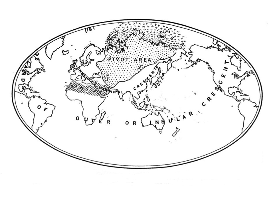 18 Mackinder called the “heartland” of the continent the whole patch extending from the icy flat shore of Siberia in the north, to the steep coasts of Baluchistan and Persia in the south of Asia, and integrated Brandenburg-Prussia, Austria-Hungary, the Baltic Sea, the navigable Middle and Lower Danube, the Black Sea, Asia Minor, Armenia, Persia, Tibet, and Mongolia into his pivot area. See: Harlford Mackinder, Democratic Ideals and Reality (Washington DC: National Defense University press, 1942), p 55, and Oliver Krause, “Mackinder's “heartland” – legitimation of US foreign policy in World War II and the Cold War of the 1950s”, Geographica Helvetica, no. 78, 28 March, 2023, 183-197, p185, https://gh.copernicus.org/articles/78/183/2023/