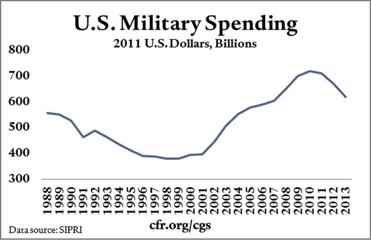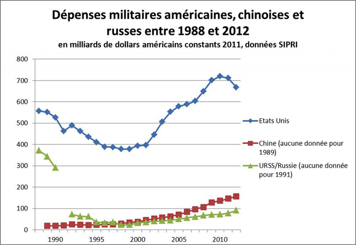 Le déficit des finances publiques sont de nature à conduire les États-Unis vers plus de sélectivité dans sa politique de défense et dans ses engagements extérieurs. L’avantage militaire des États-Unis durera encore longtemps en raison du volume de leur budget de défense qui s’élevaient à 41 % des dépenses mondiales de défense en 2012 et des énormes dépenses de recherche et de développement qui ont creusé l’avance technologique américaine avec le reste du monde. L’économie américaine, qui commence à se relever de la crise de 2008, dispose d’atouts considérables.Malgré le début de la relance économique aux États-Unis et le large soutien politique dont jouissent les dépenses militaires, l’importance de la dette publique américaine entrainera une réduction des dépenses militaires afin de préserver l’équilibre des finances publiques.