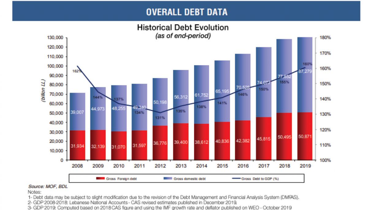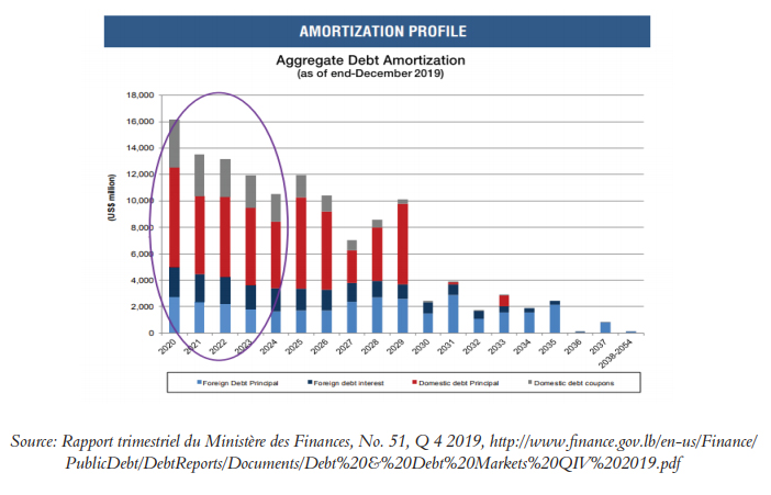 Source: Rapport trimestriel du Ministère des Finances, No. 51, Q 4 2019, http://www.finance.gov.lb/en-us/Finance/PublicDebt/DebtReports/Documents/Debt%20&%20Debt%20Markets%20QIV%202019.pdf